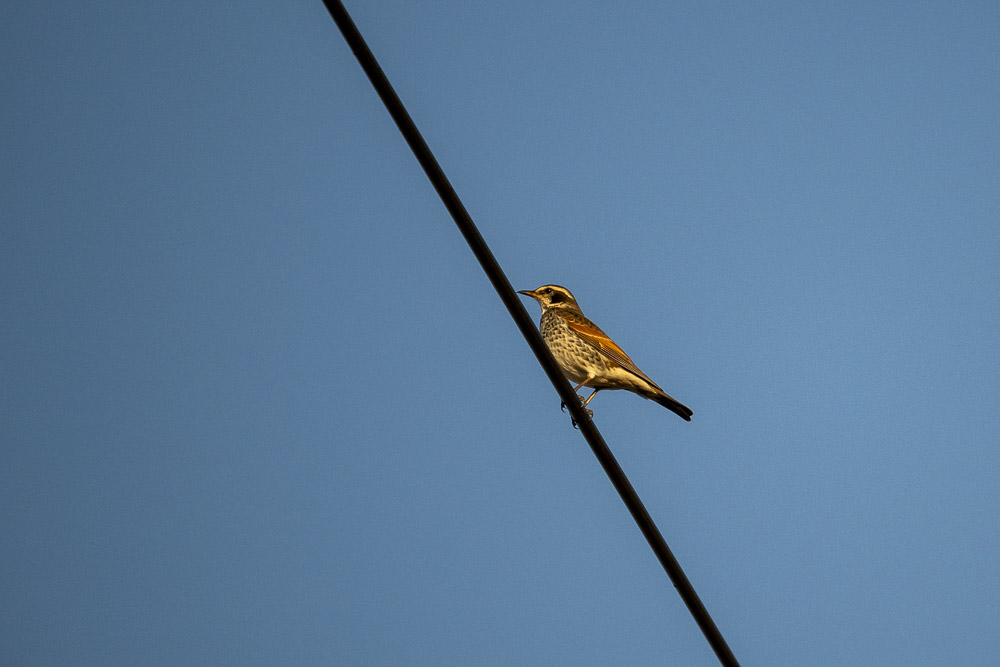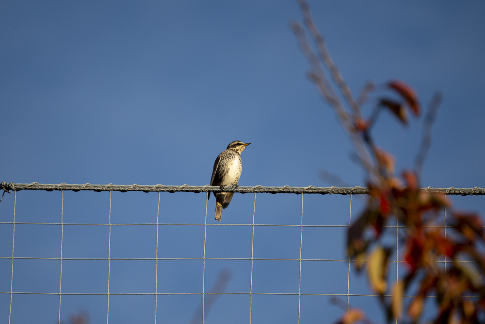11月下旬から4月の冬鳥です。年中見られるヒヨドリやイソヒヨドリと同サイズですが少しほっそりしていることと鳴き声が違うので簡単に見分けられます。